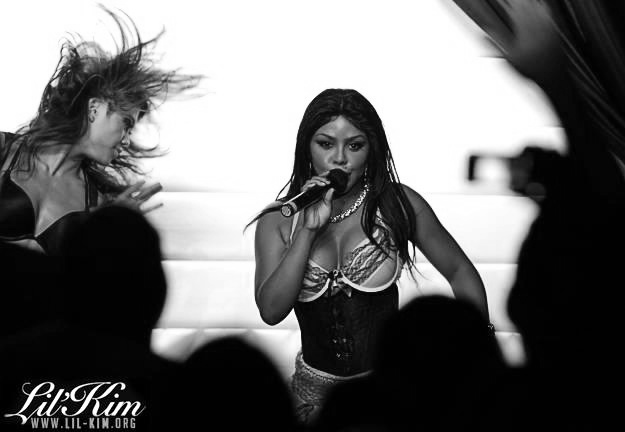 After raising eyebrows earlier this week with her Birthday appearance at Millions of Milkshakes, Lil’ Kim went for a slightly more demure look at her concert at The Rrazz Room in San Francisco on Tuesday (July 13th). She looks good.